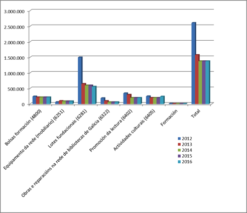 | Promoción da lectura e do libro (6402) | 200.000 | 200.000 | 200.000 | 300.000 | 346.845 |