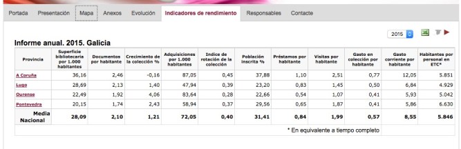 As bibliotecas galegas non podemos alegrarnos destes datos xa que non nos deixan quedar en moi bo lugar con respecto á media dos datos bibliotecarios do estado.