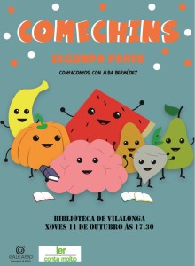 - Xoves 11, Comechíns, segundo prato na biblioteca de Vilalonga, desde 4 anos, 17.30h.
