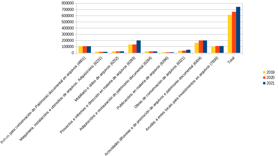 O proxecto de Lei de orzamentos da Xunta de Galicia do ano 2021 aumenta a partida dedicada a Arquivos respecto ao ano anterior en 80.000€.
