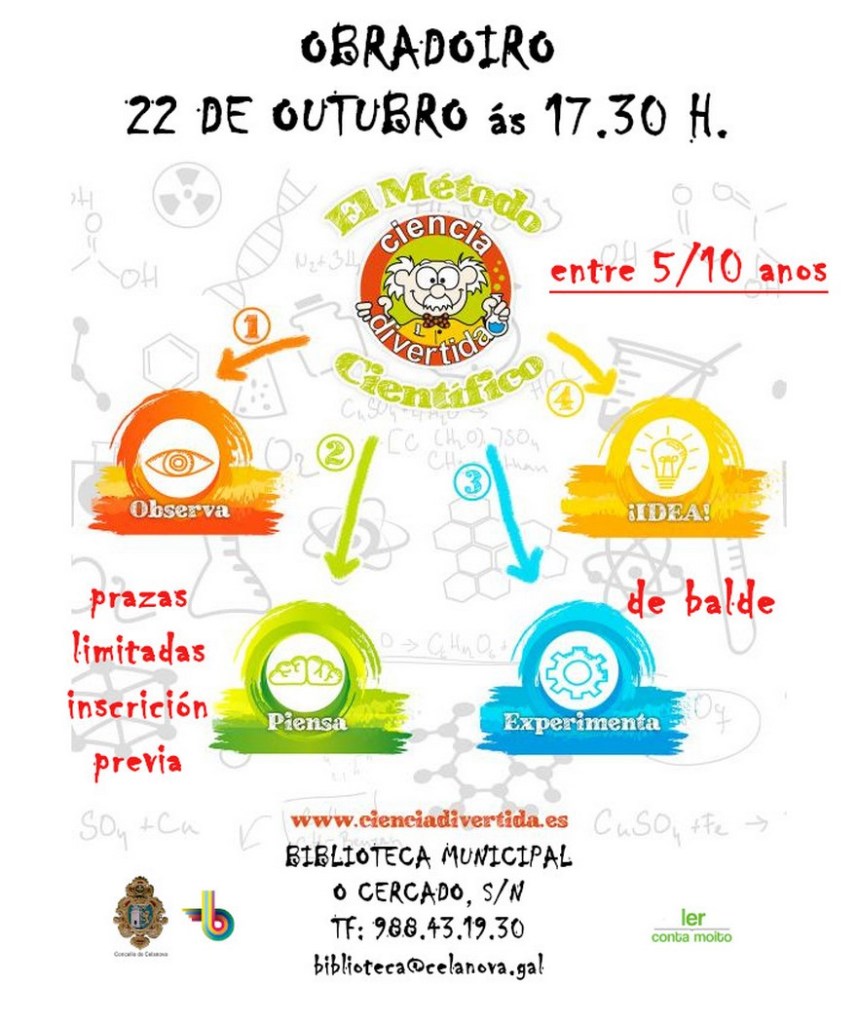 - Venres 22 de outubro: obradoiro “O método científico”, ás 17.30 h. , para rapazada de entre 5 e 10 anos