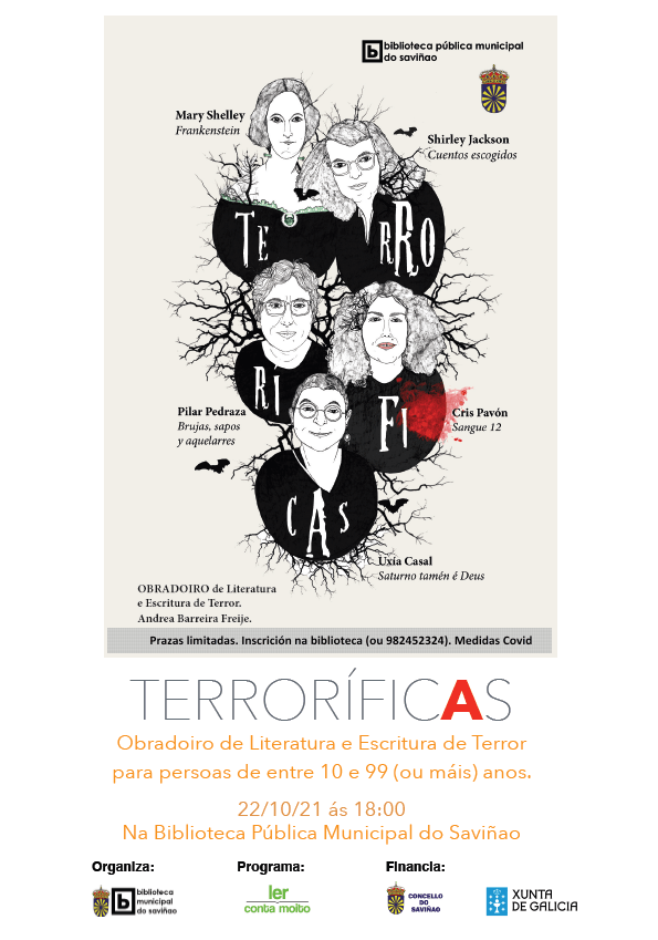 - Venres 22 de outubro: Terroríficas: historias de terror: obradoiro de achega á literatura de terror a diversos públicos a través da lectura e da escritura, ás 18h.