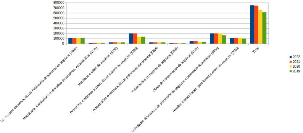 | Actividades difusoras e de promoción de arquivos e patrimonio documental (6404) | 200000 | 200000 | 200000 | 161250 |