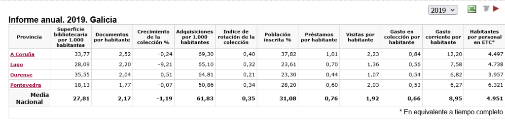 Isto é o que podemos tirar dos datos das últimas estatísticas de bibliotecas, correspondentes ao ano 2020, publicadas polo Ministerio de Cultura.