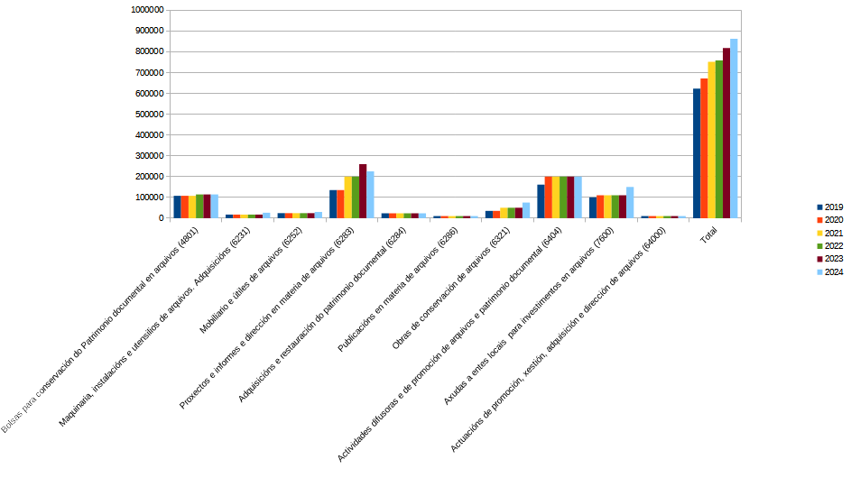 | Publicacións en materia de arquivos (6286) | 10000 | 10000 | 10000 | 10000 | 10000 | 10000 |